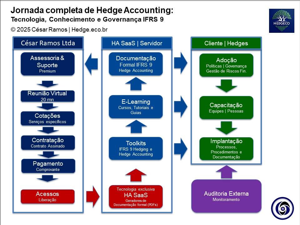 Fluxograma da Jornada Completa de Hedge Accounting: Tecnologia, Conhecimento e Governança IFRS 9. Processo de Alto Valor da César Ramos Auditoria e Consultoria Ltda.